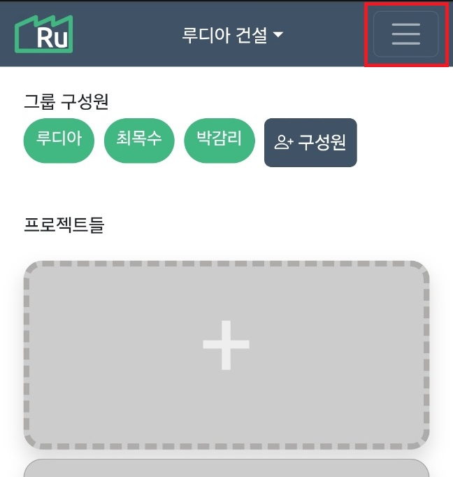 - 첫 화면에서 오른쪽 상단메뉴를 선택합니다.