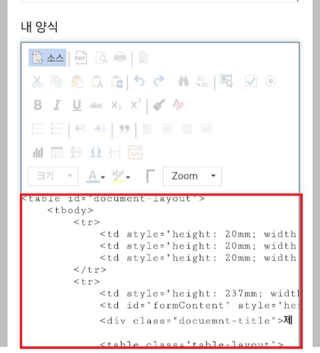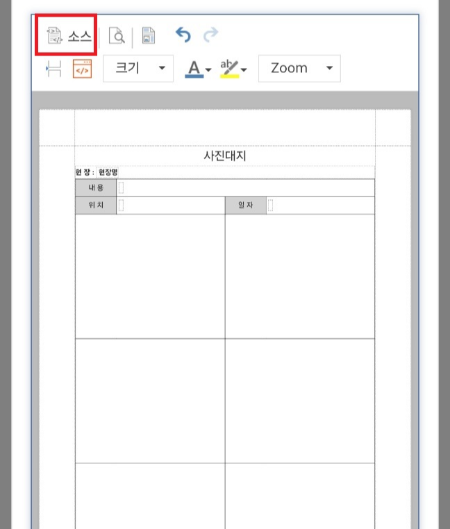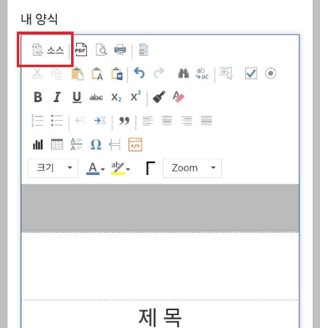 다시 [소스아이콘]을 눌러 미리 보기 모드에서 양식이 올 바른지 확인하고 저장합니다.